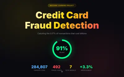 ML fraud detection achieving 91%+ accuracy with interactive visualizations of model performance and fraud patterns.